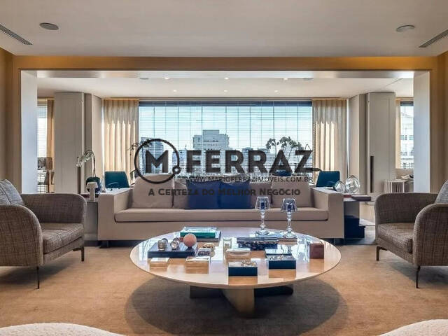 Em andar alto, acima da maioria dos prédios do entorno, com bom recuo em relação à rua e vista aberta. Planta de 554 m², com ambientes amplos e bem distribuídos. Projeto de interiores de Roberto Migotto, com paleta neutra e acabamentos que valorizam a iluminação natural. Área social integrada, três amplas suítes — facilmente reversíveis para quatro — com closets planejados por Augusto Moreno. Cozinha equipada com eletrodomésticos Gaggenau. Será vendido totalmente mobiliado.